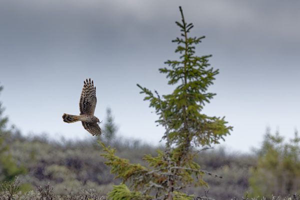 The Hen harrier, a medium-sized bird of prey belonging to the Accipitridae family, typically resides in Norway during the spring and summer months. However, a select few individuals choose to remain in Southern Norway’s Jæren region during the winter when sufficient food resources are available and the climate is not excessively harsh. Hen harriers nest in mountainous areas, and I am fortunate to have the opportunity to observe them in close proximity to my cabin within this region.